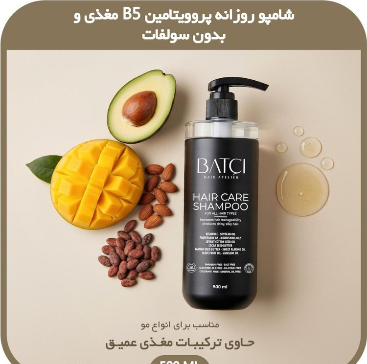 ترکیبات کلیدی: عصاره رزماری - بیوتین و پرو ویتامین B5 – ویتامین E- عصاره آلوئهورا - کراتین هیدرولیز شده – روغن های طبیعی مانند : (سویا، روغن، بادام شیرین، شی باتر، آووکادو و زیتون)